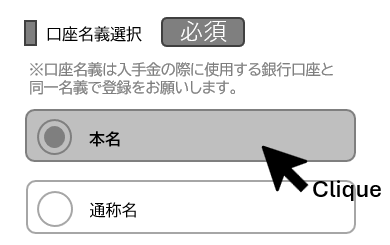 selecione “Nome legal (nome verdadeiro)「本名」”, conforme mostrado na imagem abaixo.