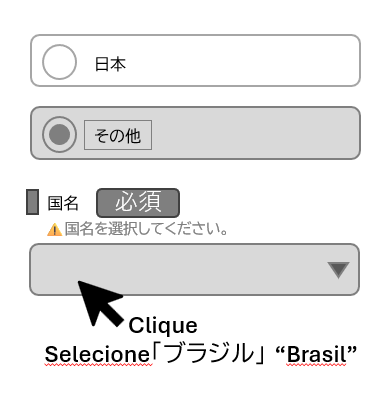 Em seguida, selecione o país (nacionalidade) conforme mostrado na imagem abaixo.