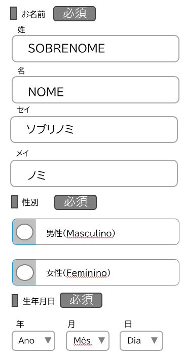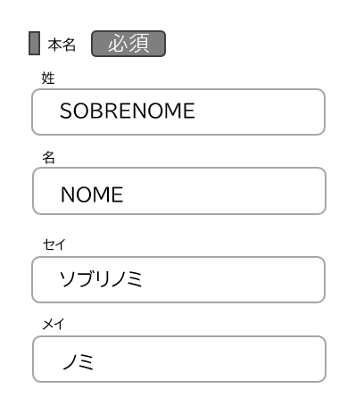 - No campo “Nome「名」”, digite o nome em letras romanas