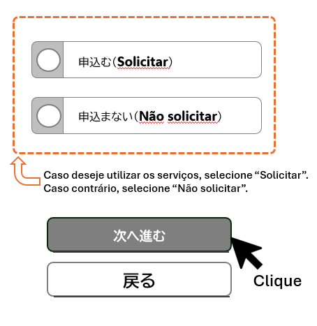 Se estiver em dúvida, você pode selecionar “Não solicitar「申込まない」” e continuar sem problemas.